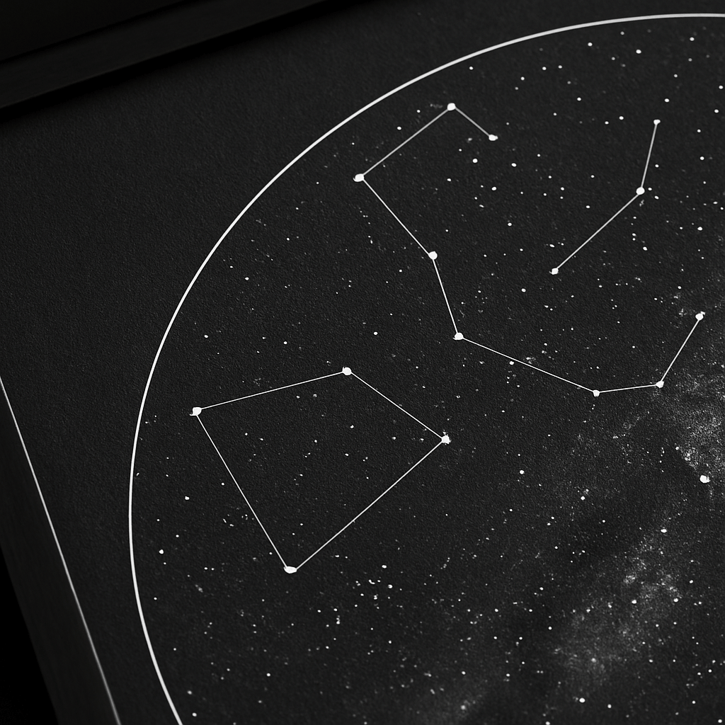 Our star maps blend innovation with scientific rigor: we rely on real astronomical data drawn from professional catalogs and processed with cutting-edge algorithms to recreate with absolute precision the positions of stars, constellations, and planets at any moment in history. Our team of experts collaborates with astrophysicists and graphic designers to transform this information into elegant, personalized compositions. Each map is designed to evoke the atmosphere of a unique moment—whether it’s an anniversary, a birth, a wedding, or any other special occasion—while maintaining uncompromising artistic and handcrafted quality. From calculating celestial coordinates to selecting premium printing materials, we devote meticulous care to every detail, so your memory can shine as brightly as the stars it depicts.